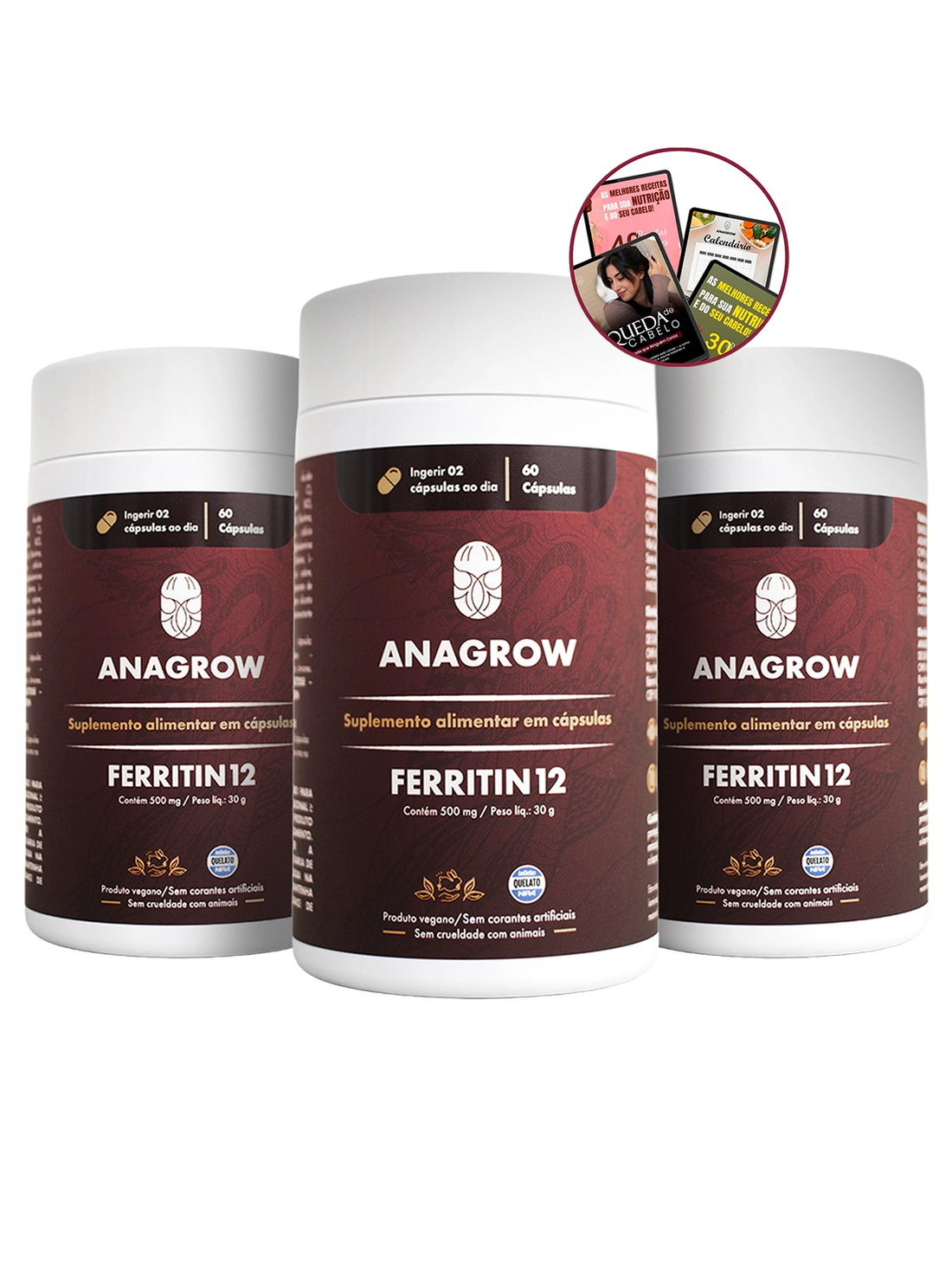 Vitamina de Combate à Queda de Cabelo Ferritin12 60 Cápsulas + 5 E-books