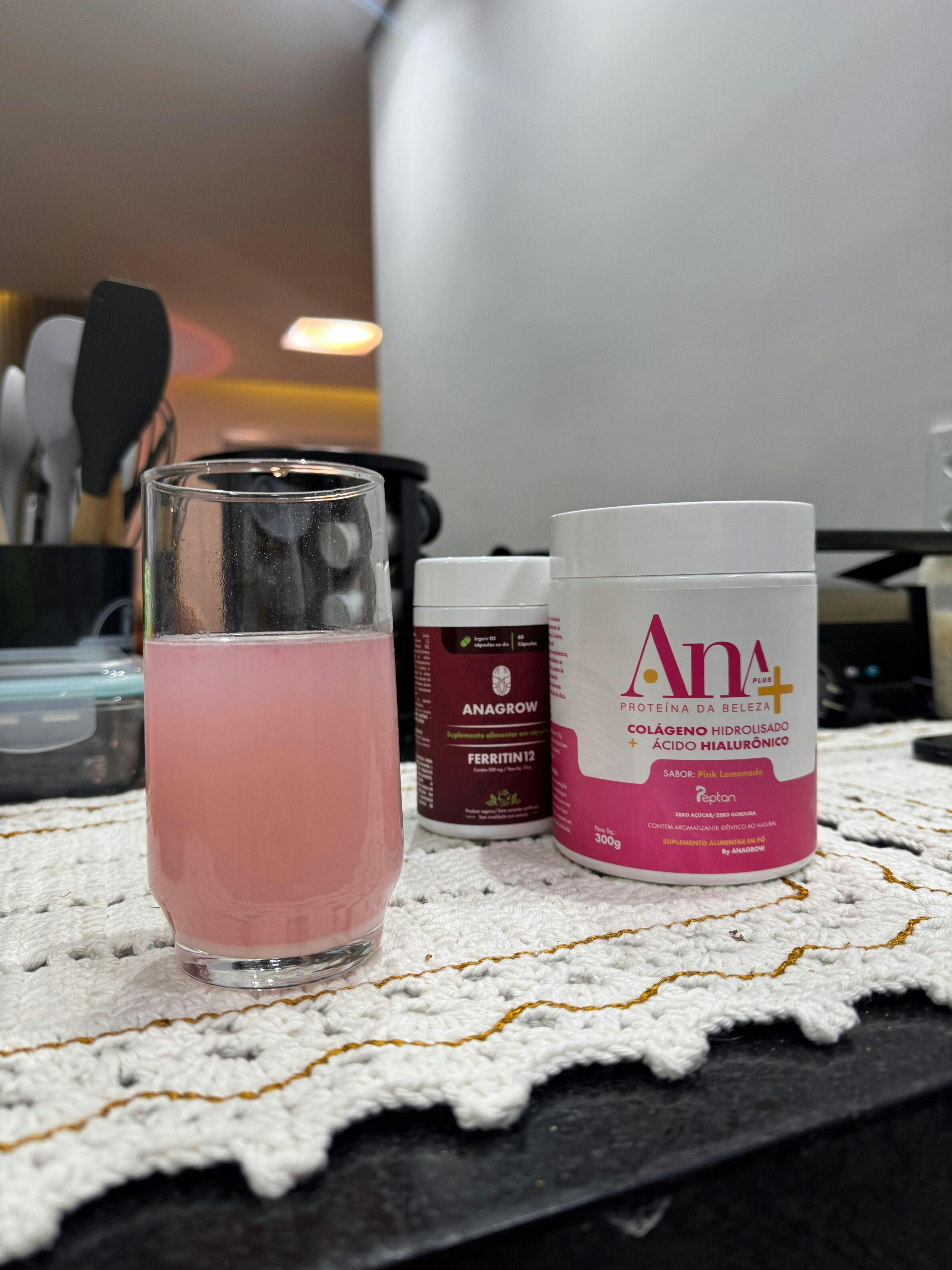 Ana Plus é um suplemento à base de colágeno hidrolisado Peptan®, enriquecido com ácido hialurônico, vitaminas do complexo B e vitamina C, desenvolvido para fortalecer pele, cabelo, unhas, articulações e promover firmeza e hidratação de dentro pra fora. Seu sabor Pink Lemonade é delicioso e fácil de incluir na rotina diária de autocuidado.