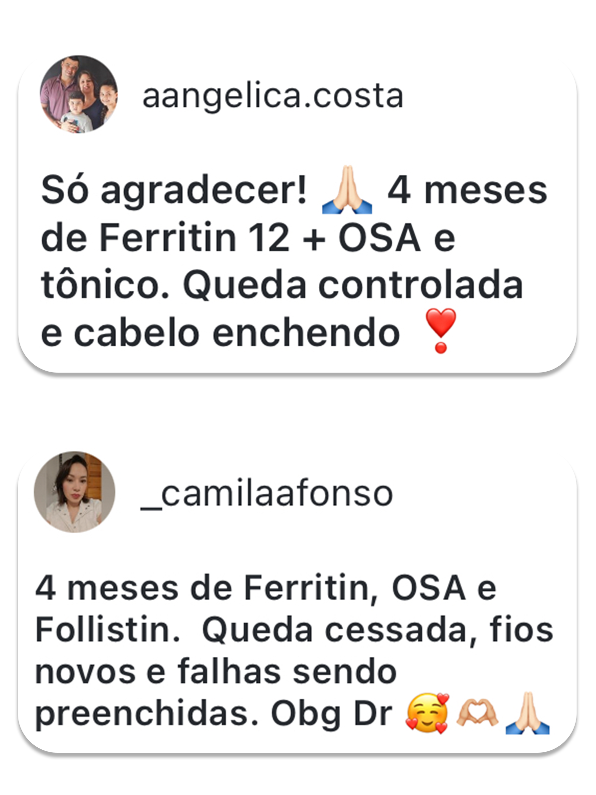 Não recomendamos interromper completamente após os 3 meses iniciais. Para manter resultados duradouros, o uso contínuo ou periódico dos suplementos é importante, já que as causas da queda podem retornar sem manutenção adequada.