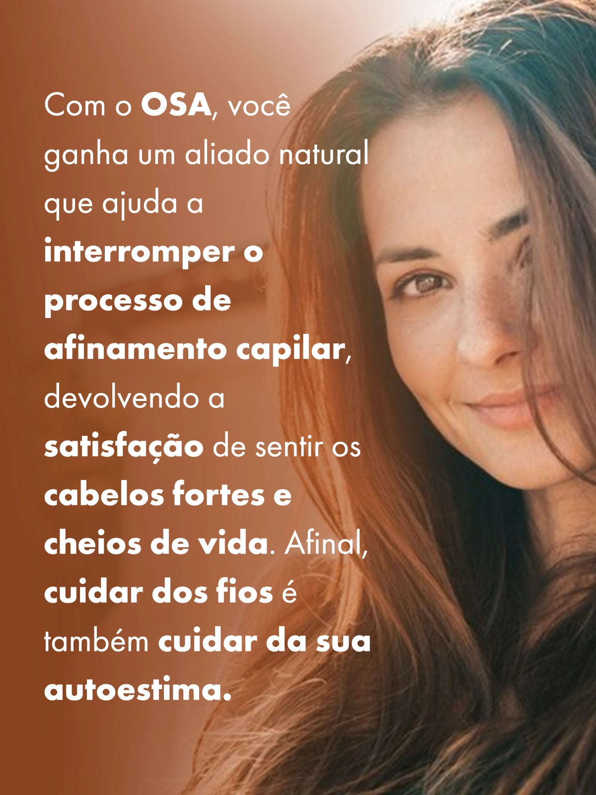 ✓ 1 OSA de presente: potencializa os resultados ao reduzir inflamações do couro cabeludo, combater o afinamento hormonal e hereditário, garantindo cabelos mais fortes e resistentes.